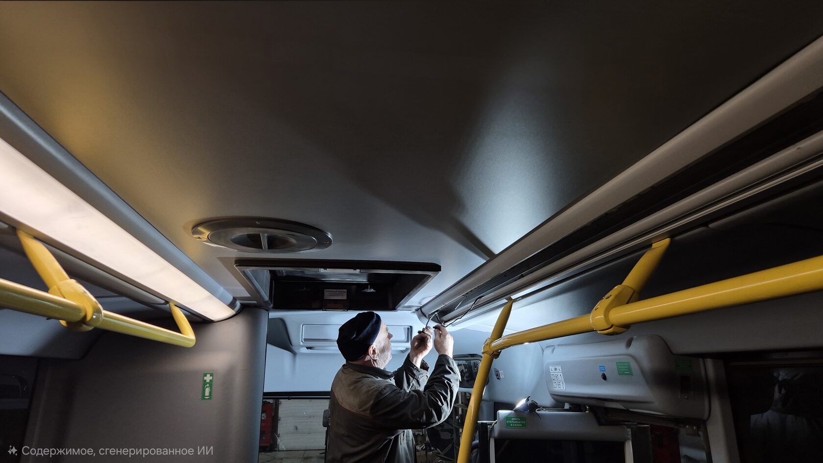 Замена по гарантии светодиодного освещения салона на автобусе Вектор-Next