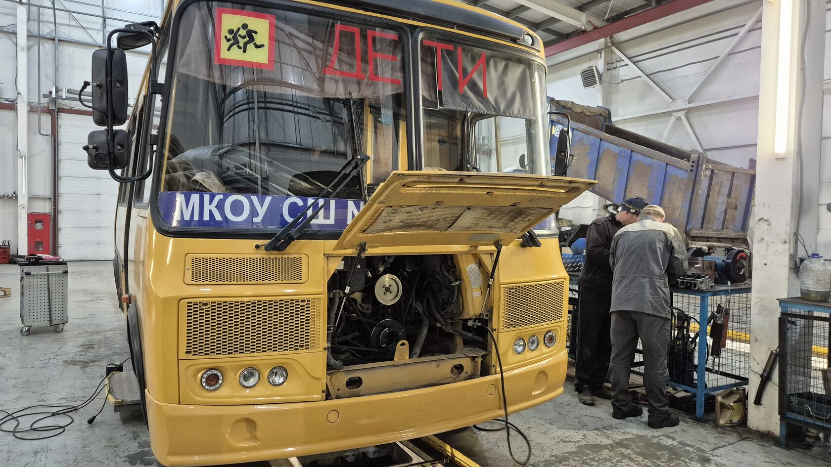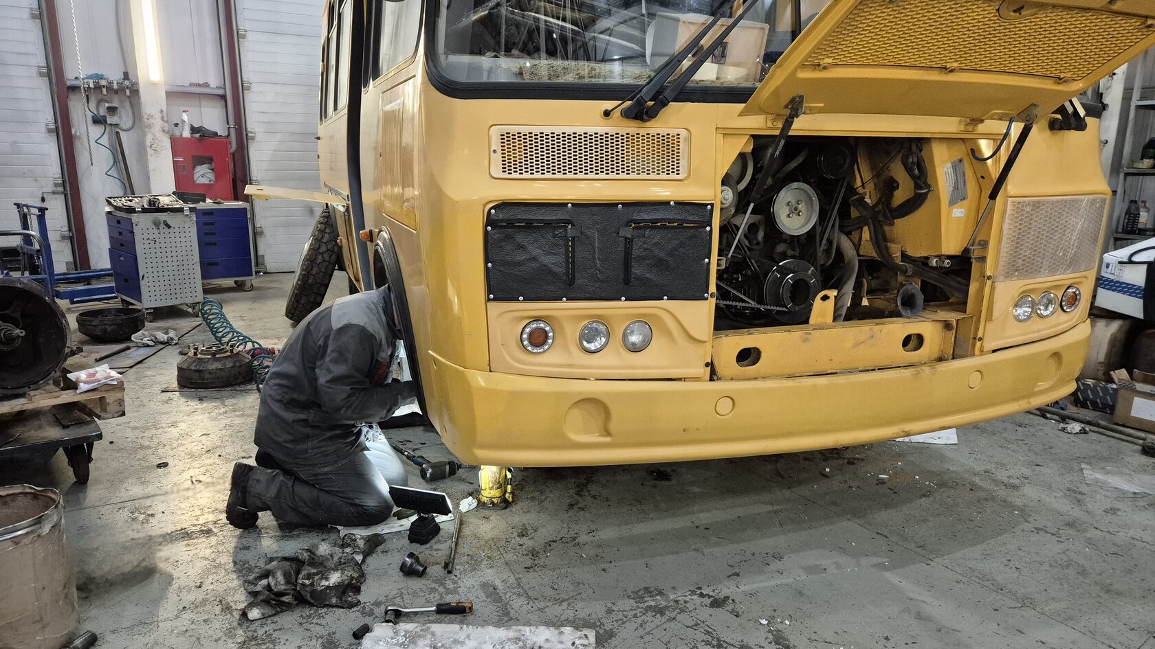 Сегодня на сервисную станцию приехал на обслуживание и небольшой ремонт школьный автобус